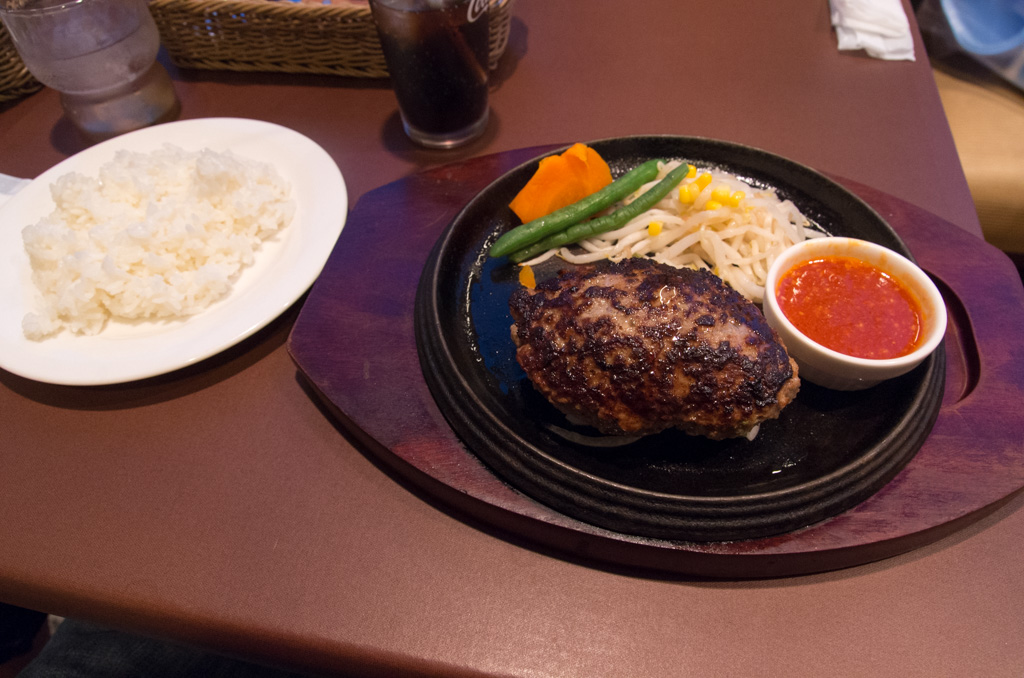 窓際の席は眺めが良いし、ビーフ100%のてごねハンバーグなので、美味しかった。